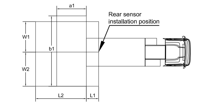 a. Move the vehicle to an open area and confirm that there are no obstacles other than body accessories within (a*b)m of the radar;
