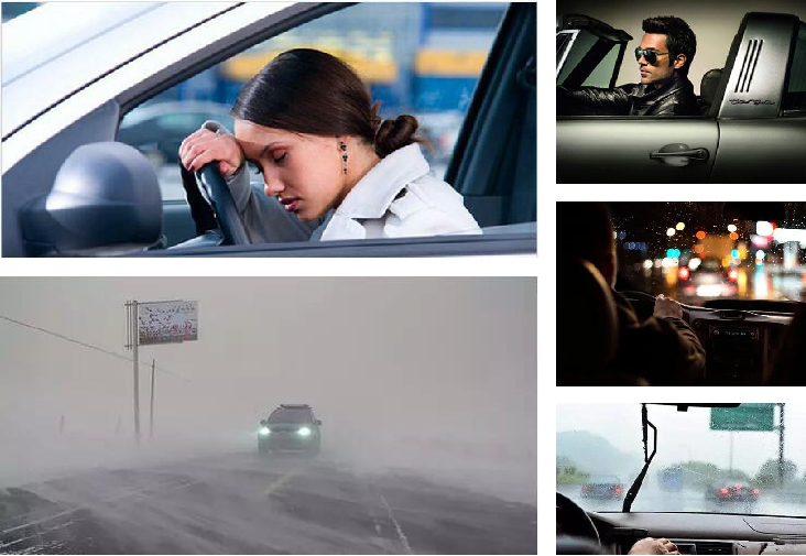 - Distraction(e.g.: turning head left/right or up/down off the road, texting, eating/drinking)